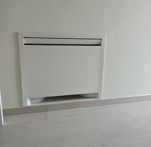 A lavori ultimati, tale ventilconvettore sarà completamente nascosto, lasciando a vista solo un pannello in lamiera verniciabile.